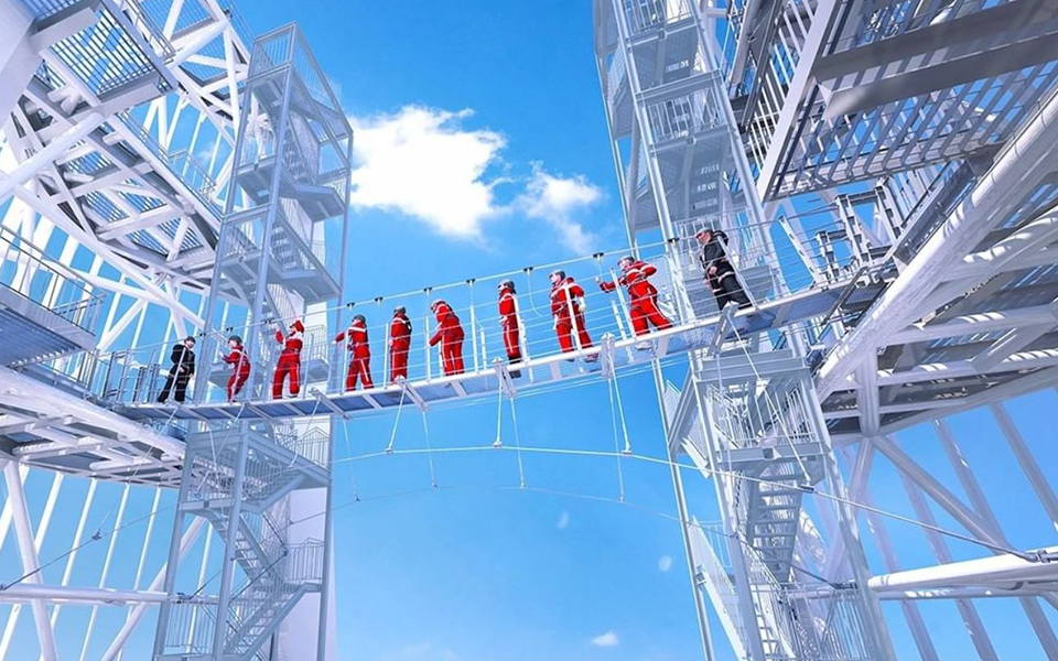 스카이 브릿지 투어는 1시간 동안 진행되며, 한 회당 최대 12명까지 참여할 수 있습니다. 121층까지 엘리베이터로 이동한 후, 계단을 통해 스카이 브릿지로 올라갑니다. 이 과정에서 약 50m의 수직 거리를 이동하게 되는데, 이는 아파트 20층 높이와 맞먹는 거리입니다.