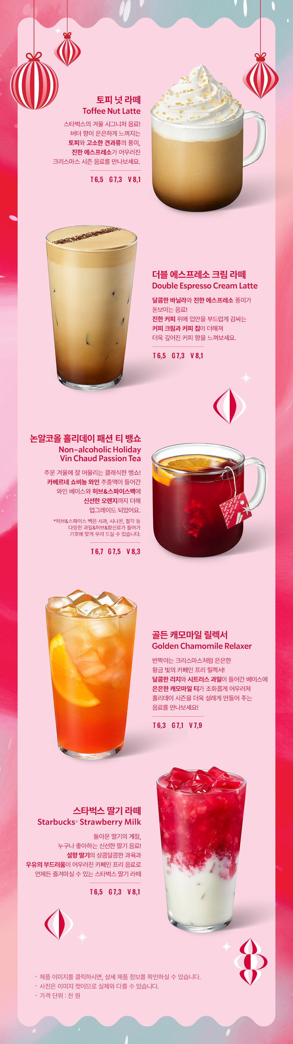 스타벅스 프리퀀시 이벤트 참여 방법은 간단합니다. 이벤트 기간 동안 미션 음료 3잔을 포함해 총 17잔의 음료를 구매하고 e-스티커를 적립하면 됩니다. 미션 음료에는 크리스마스 프로모션 음료와 리저브 카테고리 음료가 포함됩니다. 특히 토피 넛 라떼, 더블 에스프레소 크림 라떼, 논알코올 홀리데이 패션 티 뱅쇼, 스타벅스 딸기 라떼, 골든 캐모마일 릴렉서 등이 미션 음료로 지정되어 있습니다.