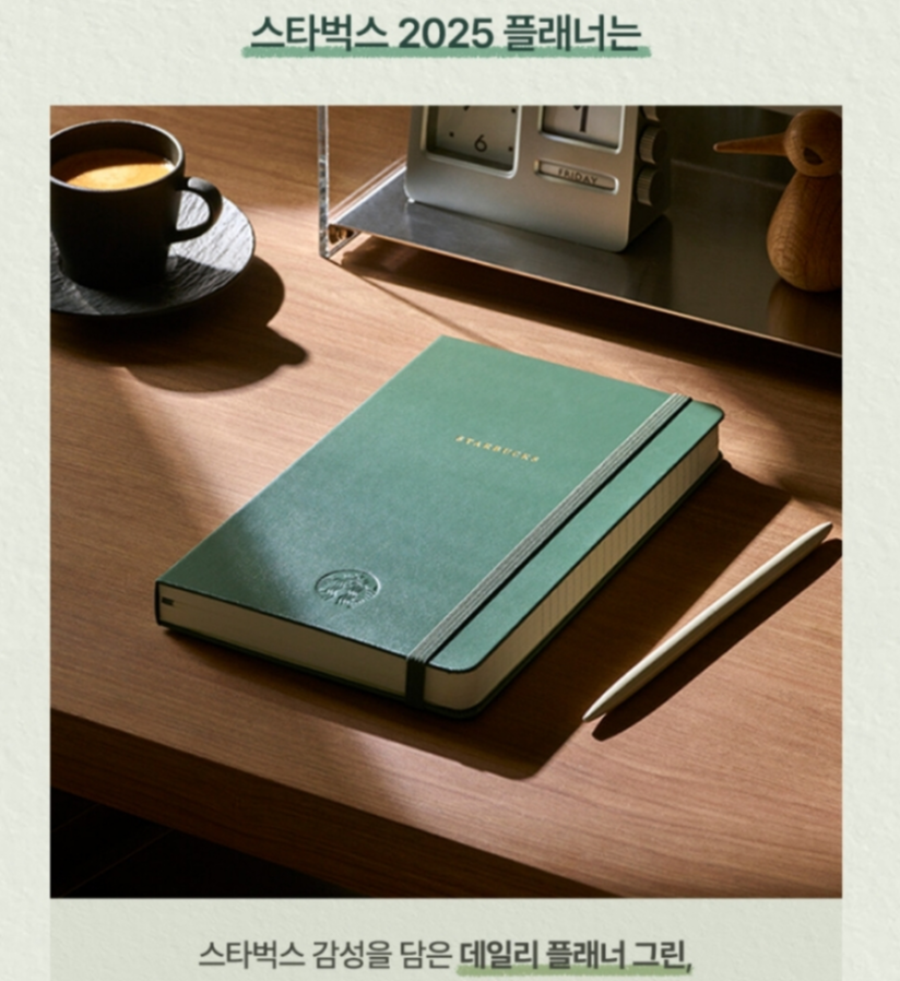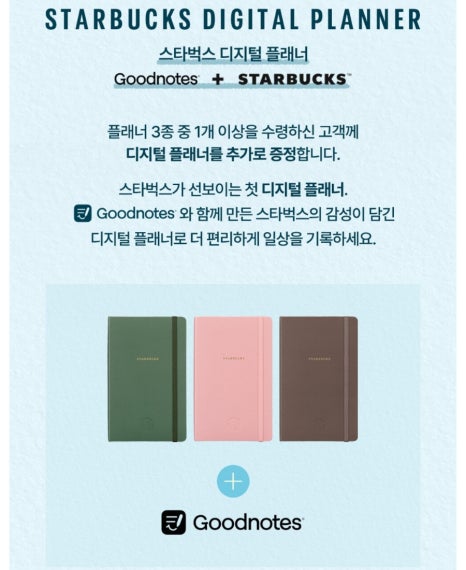스타벅스 플래너는 두 가지 디자인으로 제공됩니다. 그린 색상의 데이티드 플래너와 브라운 색상의 언데이티드 플래너입니다. 그린 플래너는 2024년 1월부터 12월까지의 일정을 기록할 수 있는 먼슬리, 위클리 페이지로 구성되어 있습니다. 브라운 플래너는 자유롭게 일정을 기록할 수 있는 언데이티드 먼슬리, 위클리 페이지와 프리노트로 구성되어 있어 더욱 유연하게 사용할 수 있습니다.